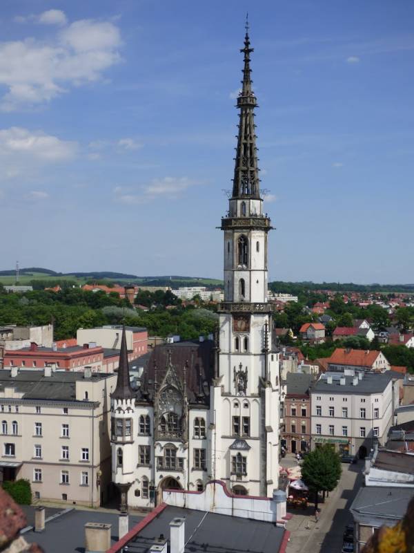 Obecny ratusz jest neogotycką budowlą wzniesioną na planie kwadratu. Wzniesiono go w latach 1862-1864, według projektu Alexisa Langera z Wrocławia. Do 1945 roku obiekt był zajmowany przez władze miasta. Po II wojnie światowej stał się siedzibą Biblioteki Miejskiej.