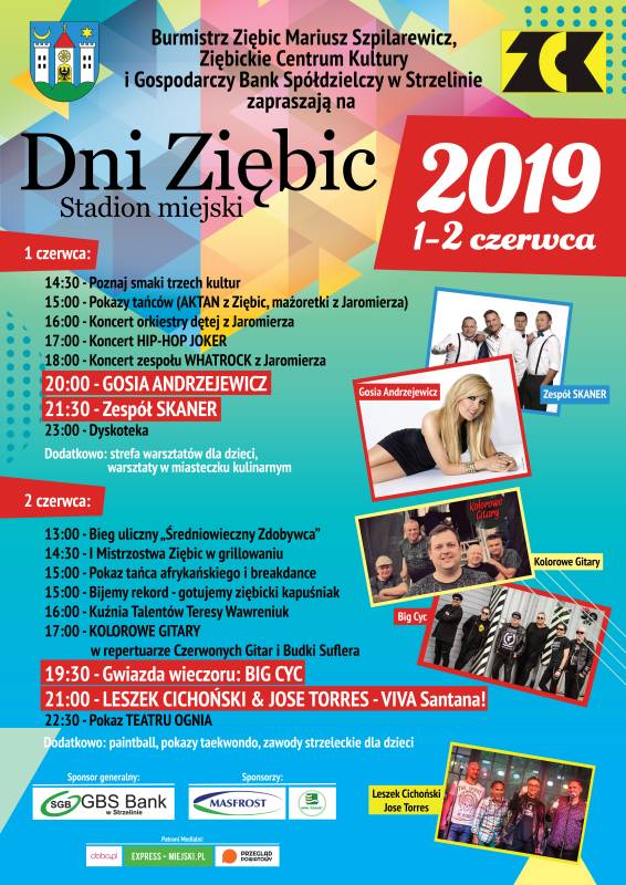 Burmistrz Ziębic Mariusz Szpilarewicz i Ziębickie Centrum Kultury zapraszają na Dni Ziębic 2019, które odbędą się w dniach 1 i 2 czerwca na stadionie miejskim w Ziębicach.