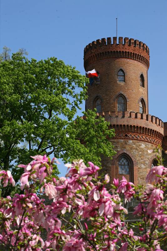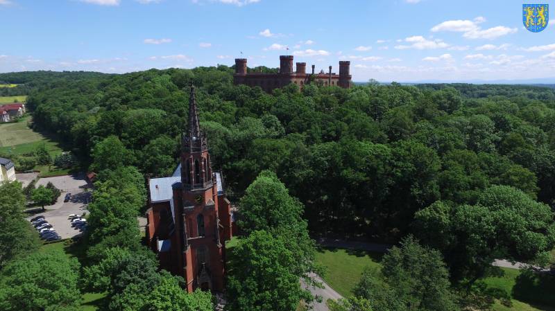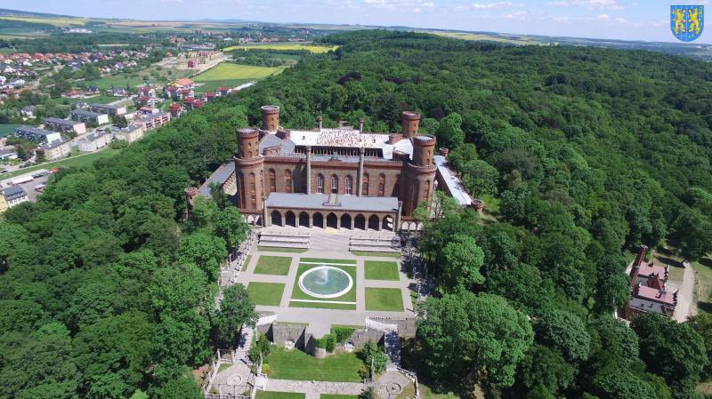 Na szczycie wzgórza, w rozległym parku w stylu angielskim wybudowano w latach 1838–1865 monumentalny pałac według projektu znanego pruskiego architekta Karla Friedricha Schinkla. Neogotycka budowla powstała dzięki księżnej Mariannie Orańskiej i aż do 1945 r. stanowiła rezydencję rodu Hohenzollernów. Pałac został zniszczony przez żołnierzy radzieckich i ograbiony przez szabrowników. Obiekt pozostaje dziś w częściowej ruinie, ale od wielu lat trwają pracę nad przywróceniem jego dawnej świetności. W przypałacowym parku znajduje się mauzoleum rodziny Hohenzollernów.