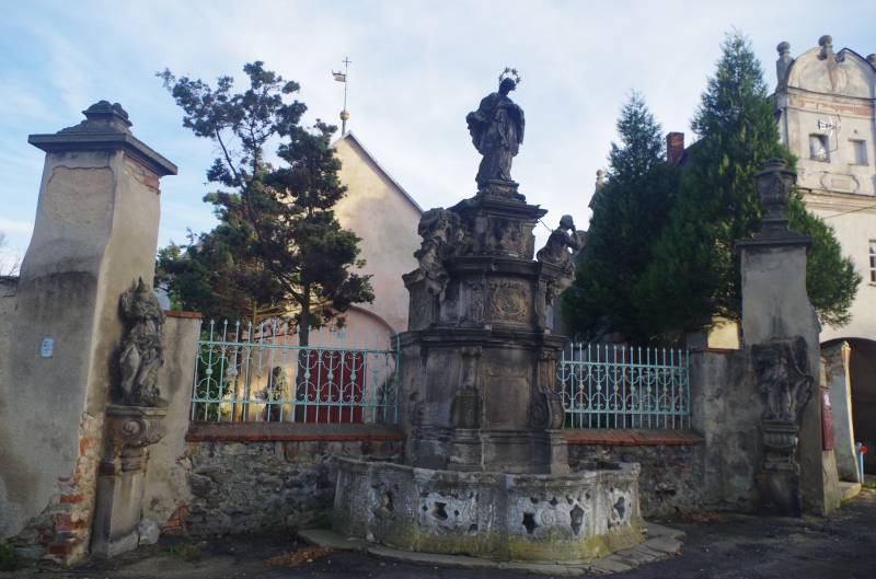 Wzniesiony w XIV w. w stylu gotyckim kościół pw. św. Andrzeja (obecnie kaplica cmentarna) oraz figura św. Jana Nepomucena z XVIII w.