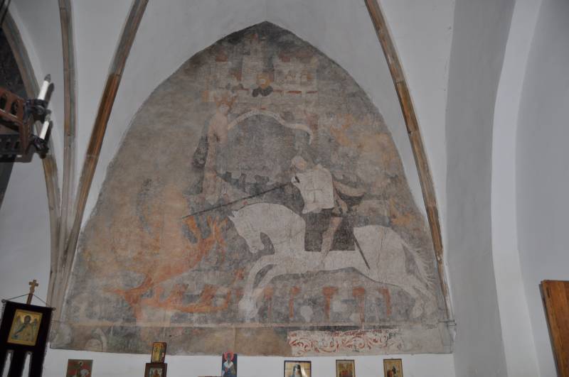 Najcenniejszym zabytkiem kościoła pw. Św. Jerzego są gotyckie freski na południowej ścianie prezbiterium, jedne z najstarszych a zarazem najwybitniejszych malowideł na Dolnym Śląsku. Pierwsze z malowideł przedstawia cykl pasyjny. Na drugim z fresków widnieje św. Jerzy walczący ze smokiem. Freski datowane są na trzecią ćwierć XIV wieku.