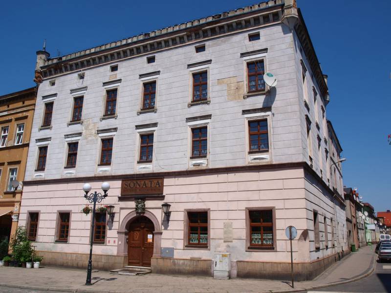 One of the oldest houses in Münsterberg, built at the end of the 16th Century. In 1656, the house was purchased by the Henryków Cistercians from a Münsterberg citizen to serve as the town residence for the abbots. The house underwent extensive remodelling in 1702 when it received i.a. a Baroque portal with the crest of the Henryków Abbey and the initials of Abbot Thomas.